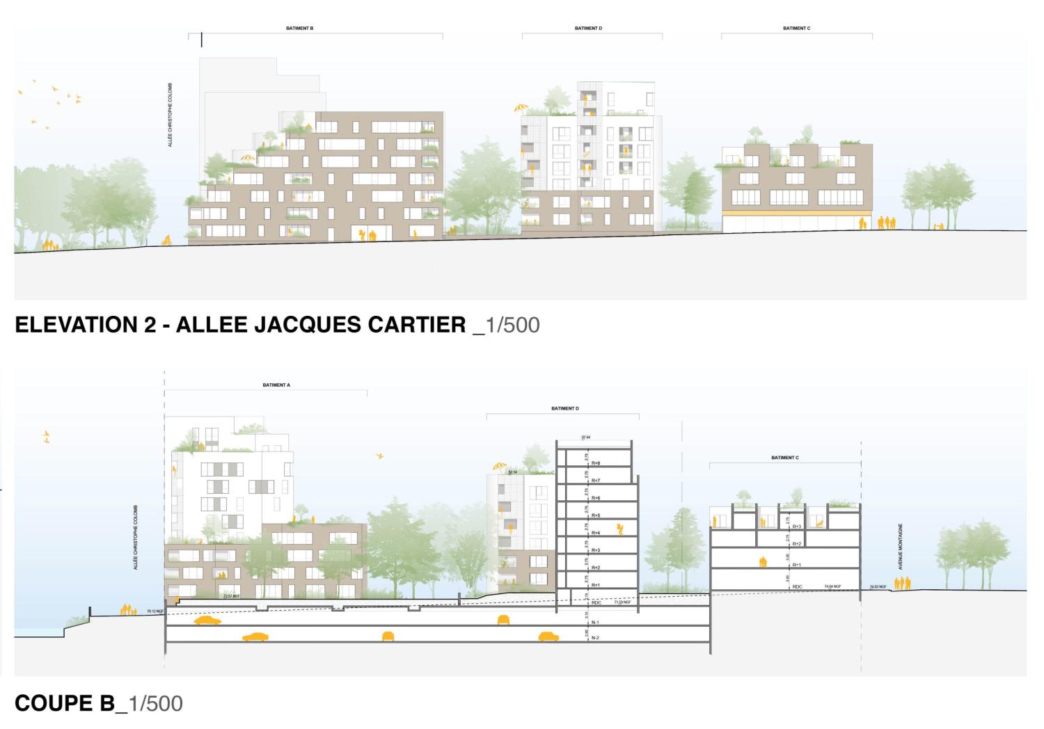 Les logements, allant du T3 au T4, sont traversants, assurant un ensoleillement optimal, une ventilation naturelle et des vues exceptionnelles. Ces qualités sont complétées par des espaces communs lumineux et des jardins soigneusement intégrés.